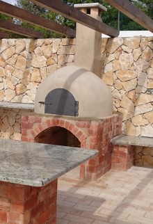 Forno de pizza e churrasqueira criados pelo construtor de lareiras.